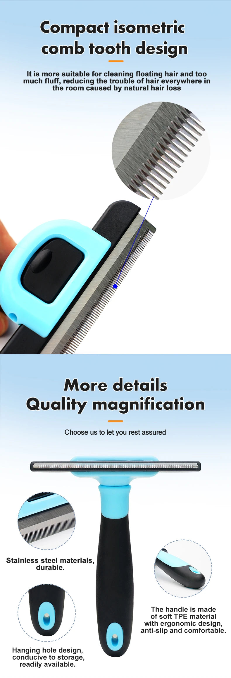 💪 Durable Stainless Steel: Long-lasting, rust-resistant, and strong for heavy grooming.